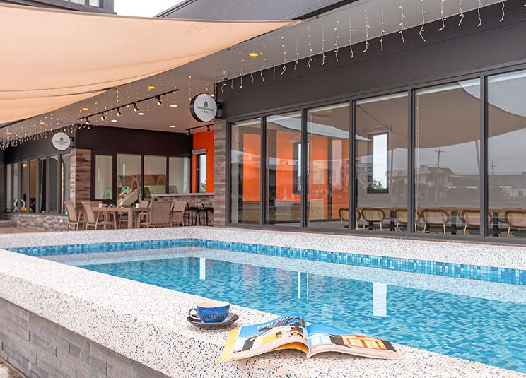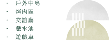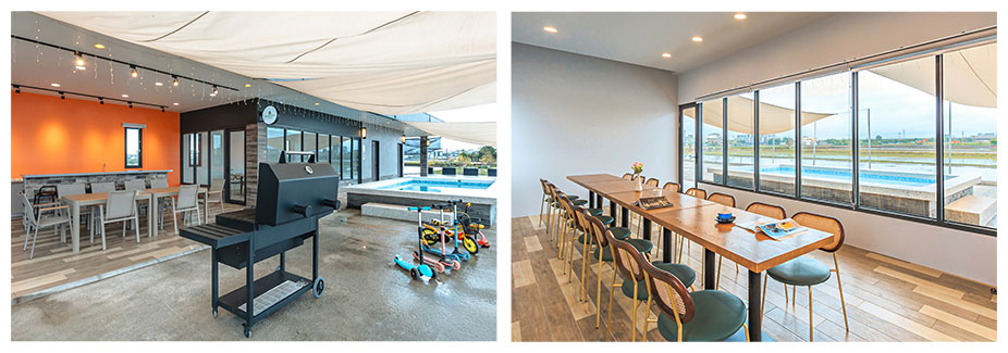 寬敞的戶外中島與烤肉區,是團體聚會、家庭聚餐的理想場所;戲水池讓您在炎炎夏日中盡情享受清涼時刻。