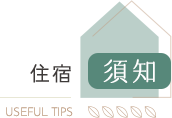 | ▪ | 民宿室內空間一律禁菸、嚼檳榔,敬請配合以確保健康。 |